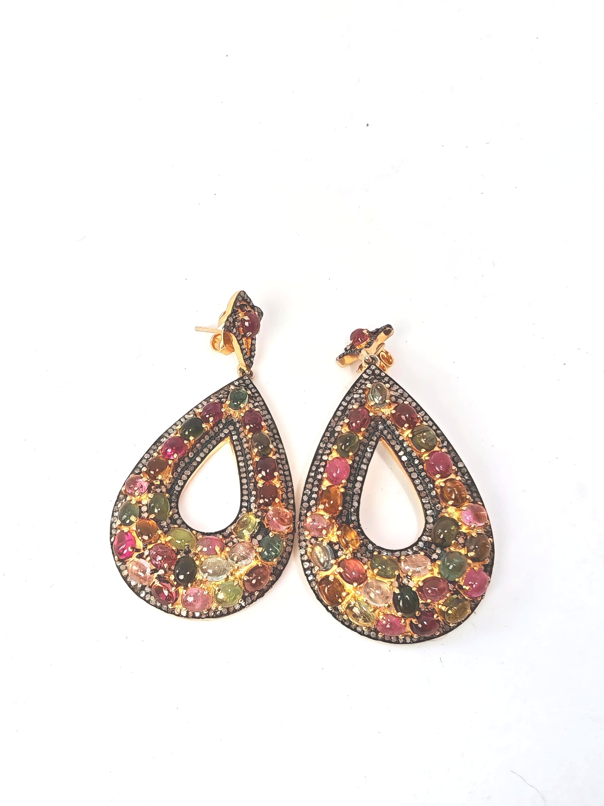 Orecchini in argento 925 placcato oro 18Kt con tormaline e diamanti naturali