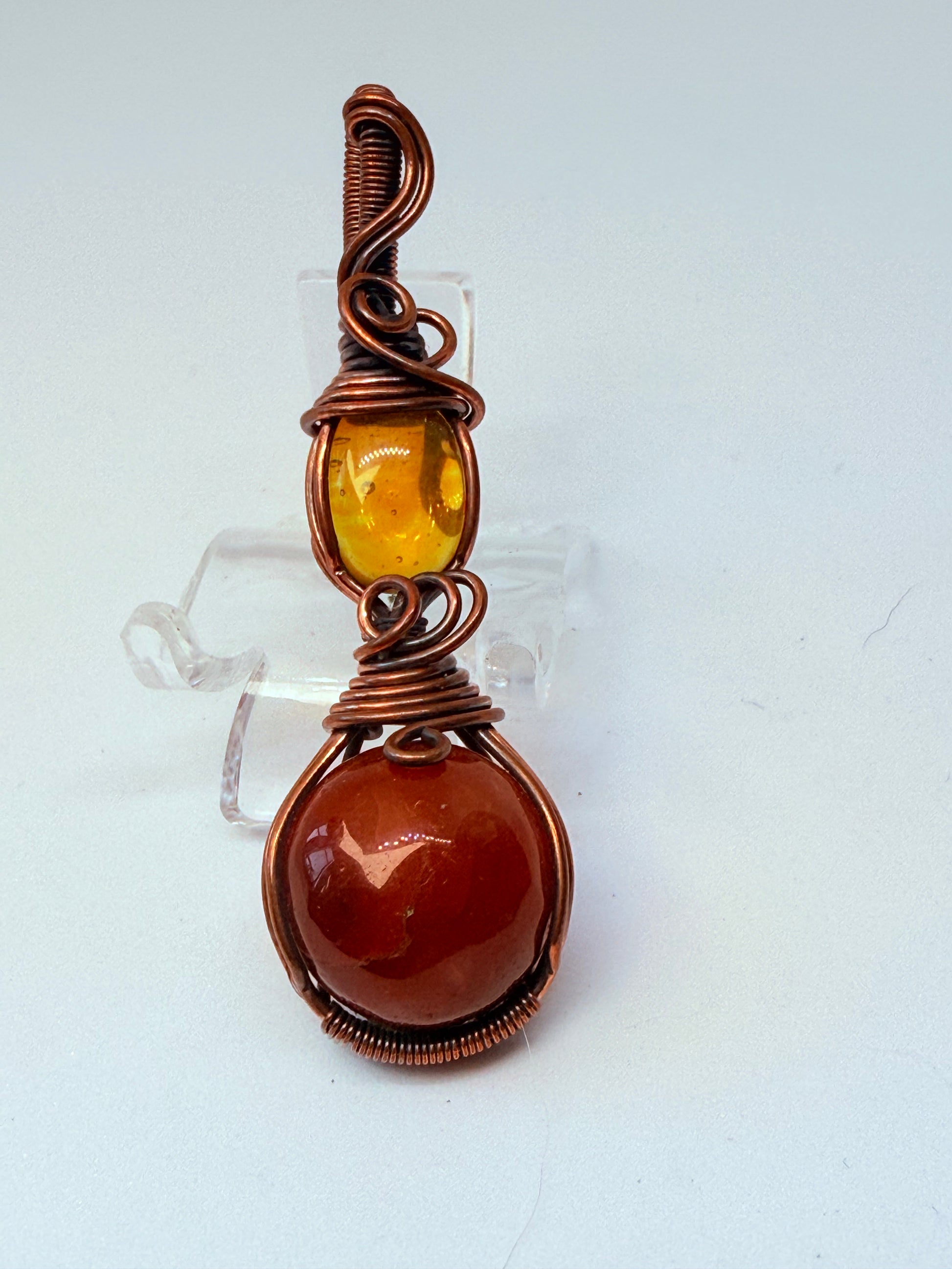 Realizzato con ambra naturale e corniola sintetica, questo pendente è un'aggiunta elegante e versatile alla tua collezione di gioielli. L'ambra è nota per le sue proprietà di guarigione e protezione, mentre la corniola rappresenta la passione e la vitalità. Combina questi benefici con il tuo stile unico.