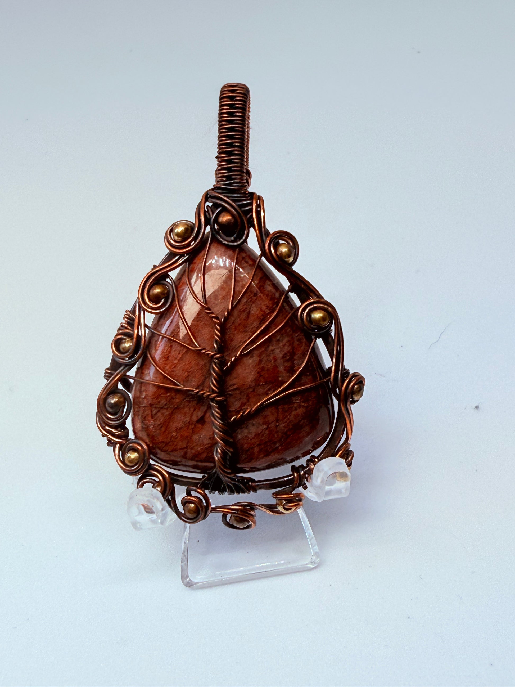 Questo pendente unico è realizzato con un bellissimo diaspro rosso. Con la sua forma e il suo colore vibrante, questo pendente è perfetto per aggiungere un tocco di colore e stile al tuo look. Il diaspro rosso è conosciuto per le sue proprietà curative, portando energia positiva e guarigione al tuo corpo e alla tua mente.